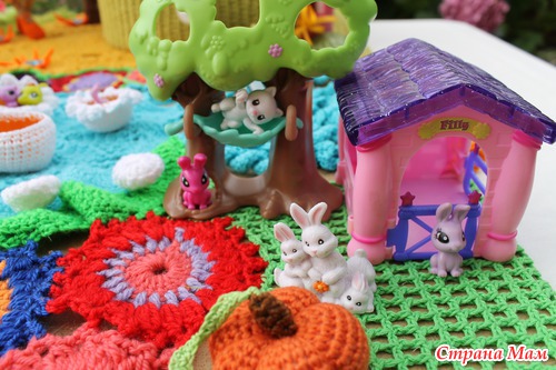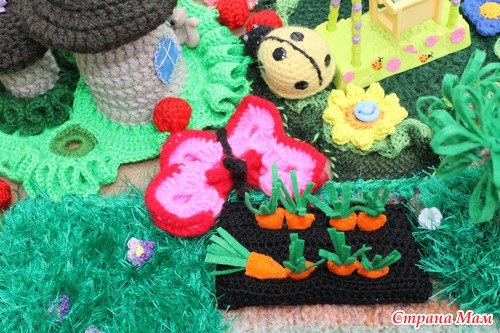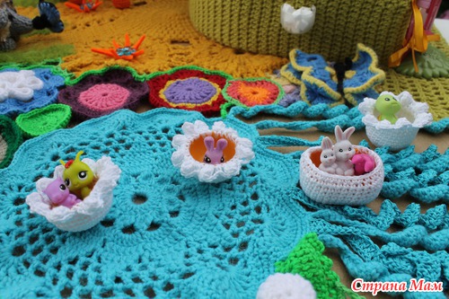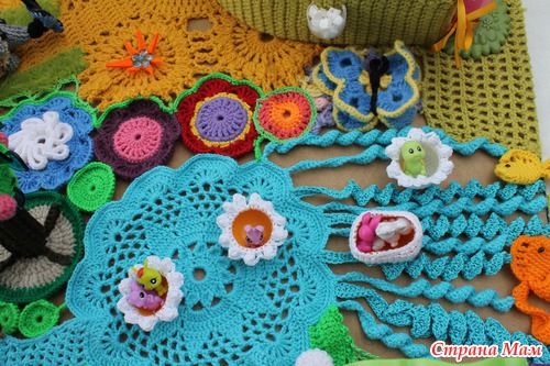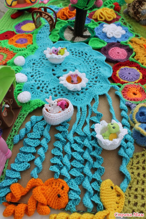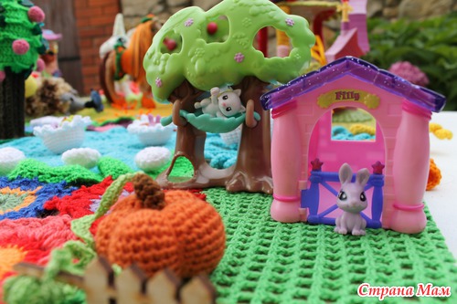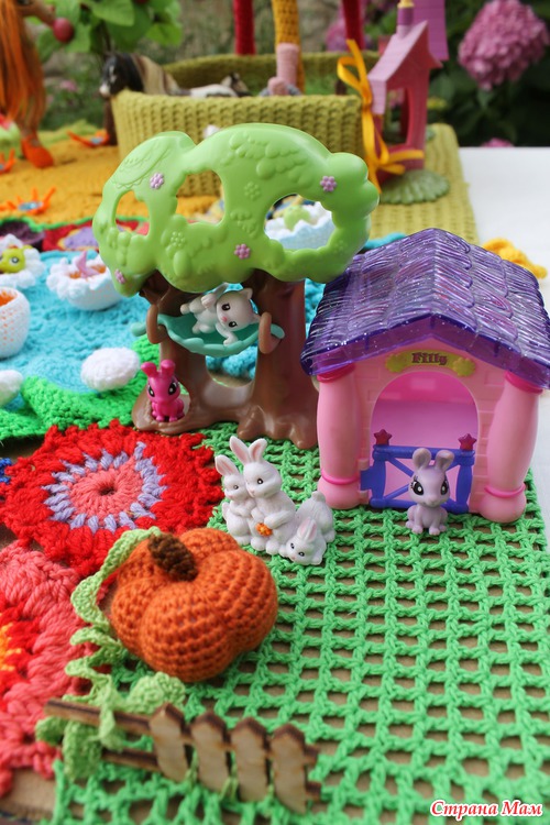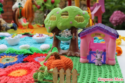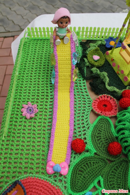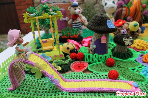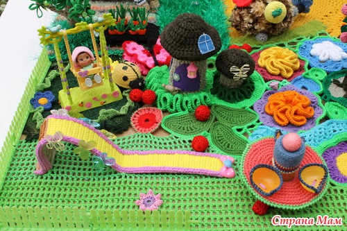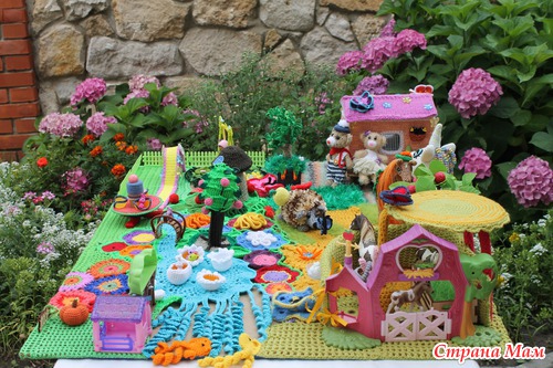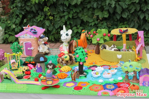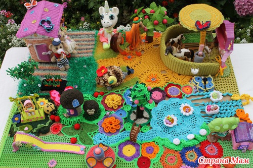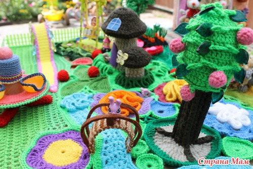 Наконец довязалась и отфотографировалась сказочная страна "Вязаная Нарния". На счет названия шучу. ))))) Название придумают маленькие хозяюшки сей развивашки. Проект совместный. Работали над ним несколько мастеров. Нет, не так. Были даны работы нескольких мастеров, которые необходимо было свести воедино.