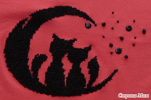 Да, из-за того, что трикотаж тянется, не получилось вышить звёзды (одиночные крестики) - они были тааааааааакие корявые! Пришлось их (звёзды) делать из бисера и пайеток. Но зато сейчас мне кажется, что такие звёзды даже лучше, чем были бы вышитые...
