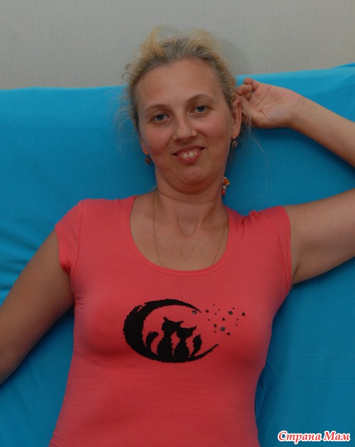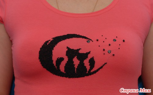 Не судите строго - впервые вышивала на трикотаже (к готовой футболке приложила канву, отшила рисунок, а после окончания работы вытащила канву)