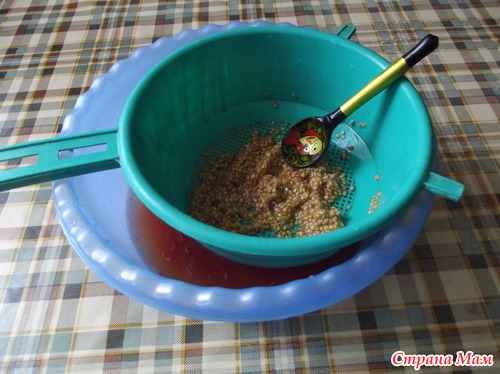 Берём дуршлаг с мелкими отверстиями, чтобы семена не проскочили.