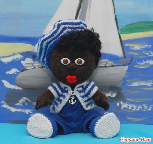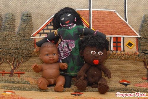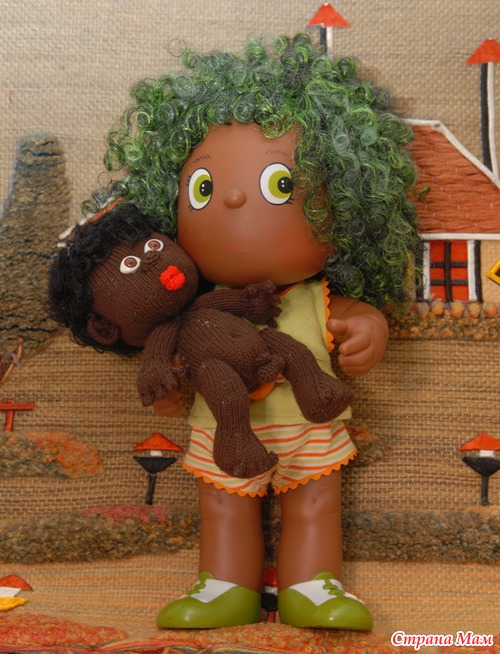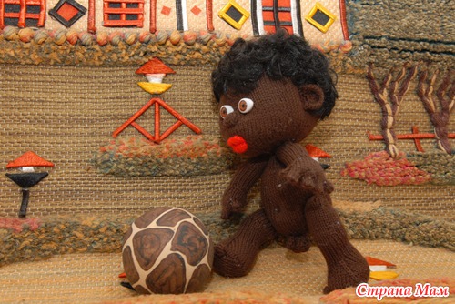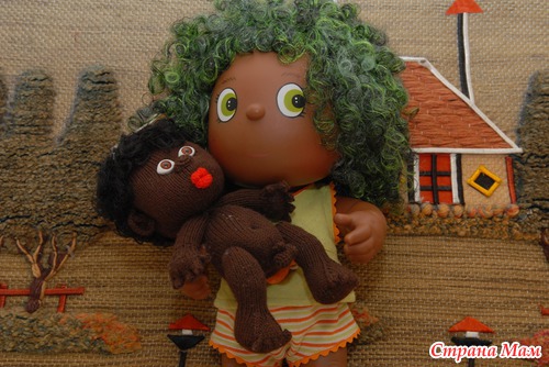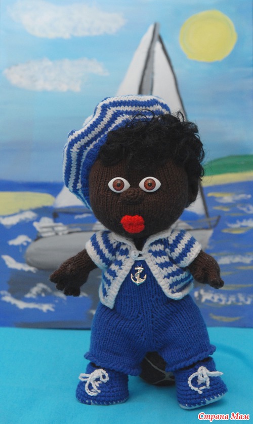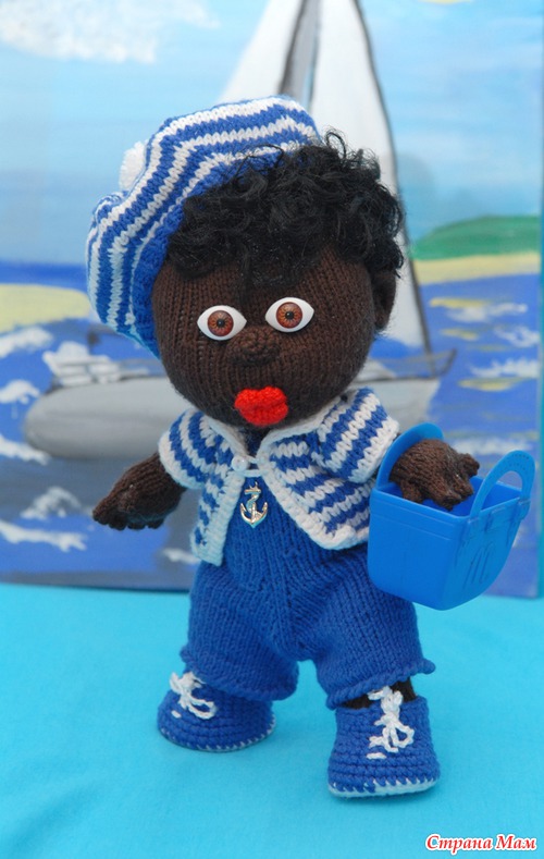 но на этот раз пупс-негритёнок.Связала я его по просьбе моей начальницы в пару (или как антипод?
