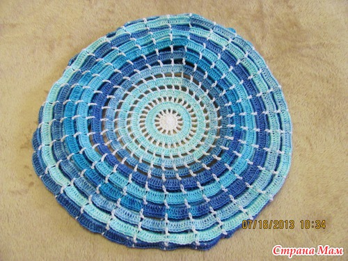 На Лесенку давно смотрела, нравится своей простотой, а смотрится на голове эффектно, добралась до нее. Ниточки Ализе Мисс Батик №3702 и немного белых той же марки, крючок 1.5 Такой морской получился, но мне цвет очень нравится
