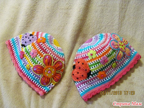 Очень популярные этим летом у меня эти радужные шапочки для веселых девчонок. Честно говоря