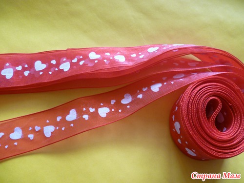 Из органзы ленточку особенно ждала, потому как ящик дома с лентами атласными - придумала что делать, но то времени нет, то органза не доехала... короче - отмазки все себе придумываю, чтобы ленты не портить.. опыта мало, жалко ленточки...