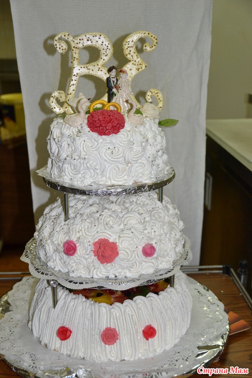3 яр ус свадебный-все ярусы-самостоятельные-т. е можно снять и расставить-и вкус тоже разный-1 шоколад с крем брюле,2-мужской каприз,3-фруктовый - вес приблизительно 7кг Читать полностью