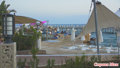 Территория была очень динамично устроена и если дне это был пляж с лежаками, то вечером это был ресторан или танцпол...