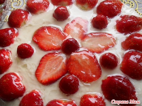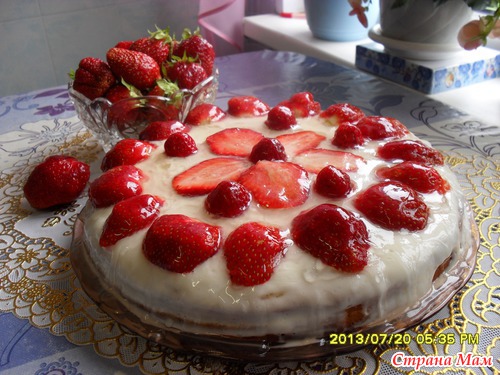 Решила я пирог на кефире украсить таким образом. Всё таки у нас сейчас сезон клубники.