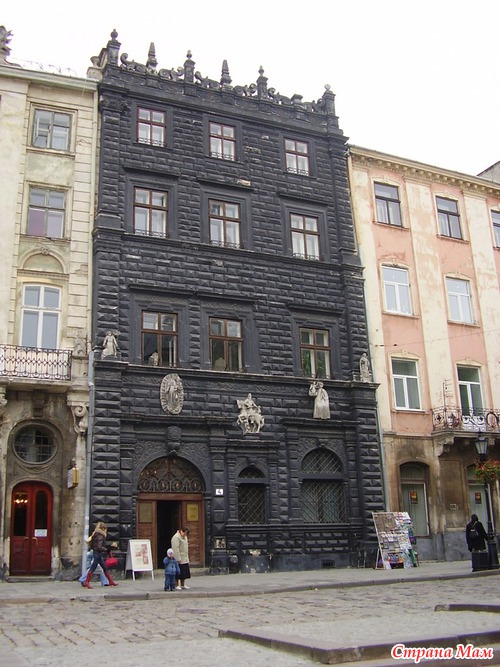 Наиболее богато декорирован дом, более известный как "Черная каменица". Построен был в конце 16в., а название получил в 19в. за потемневший от времени известняк.