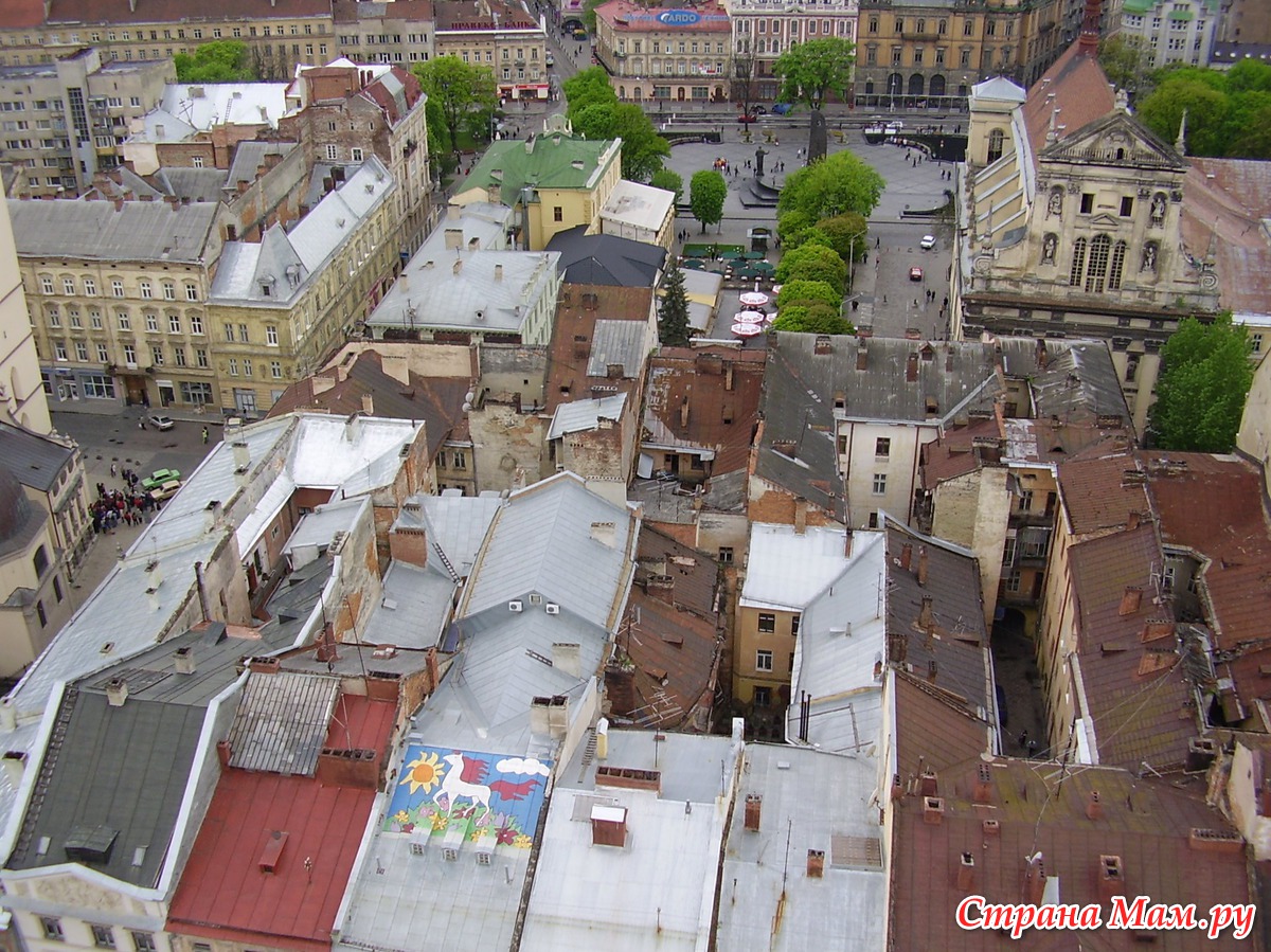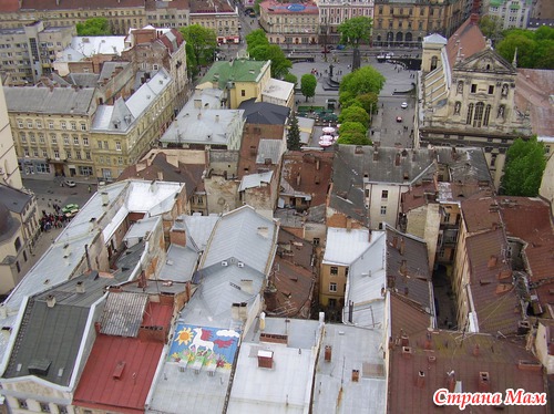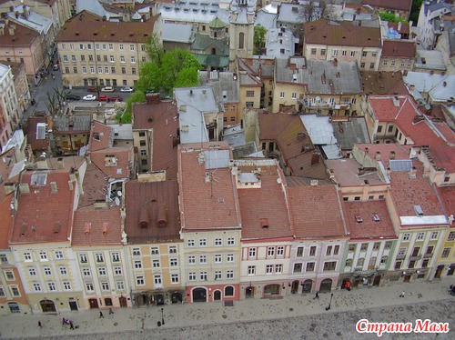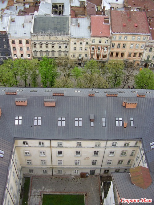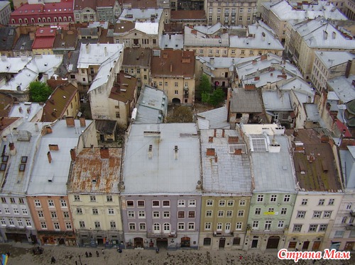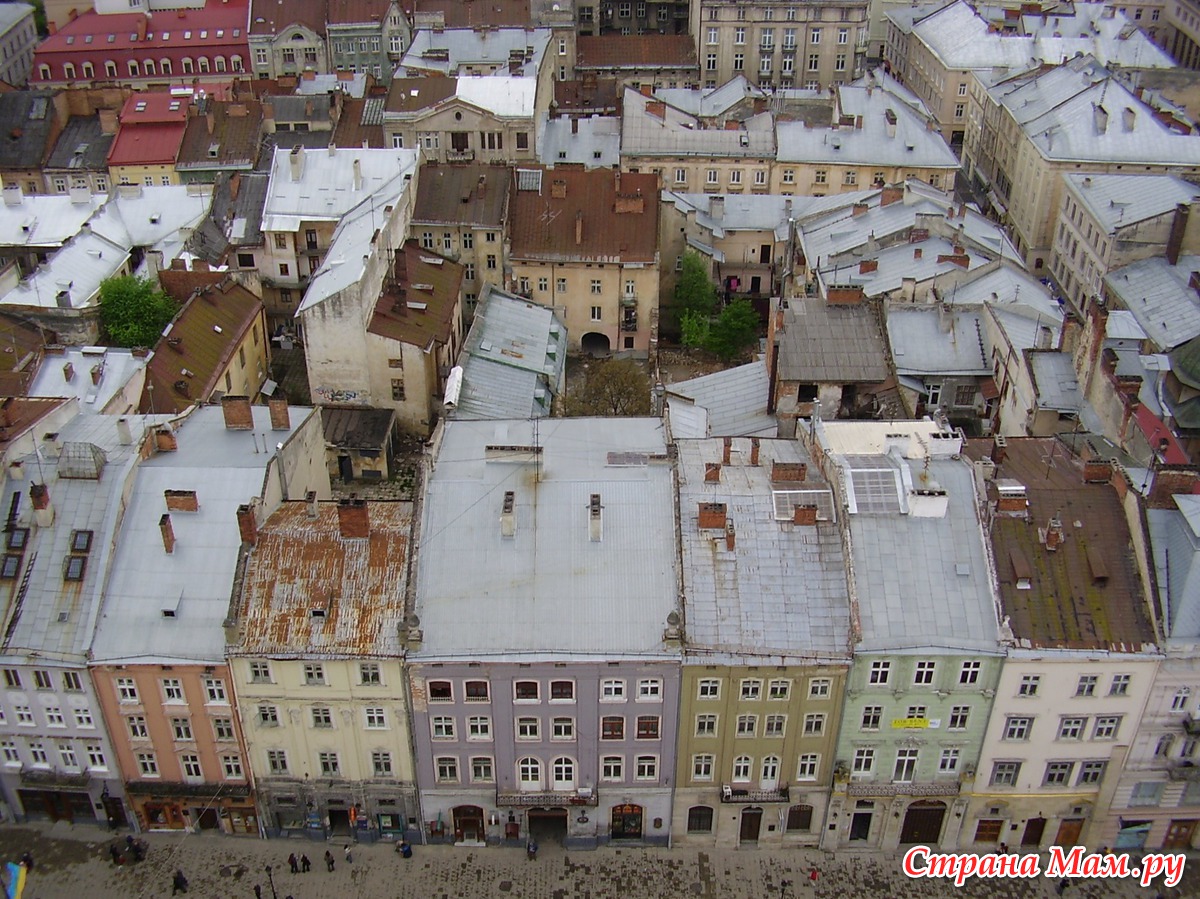 А вот крыши домов... незамысловатые, в отличие от фасадов. Наверняка где-то там живет львовский Карлсон, далекий родственник стокгольмского...