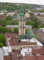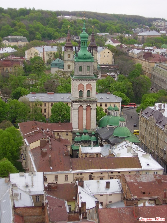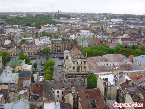 Чтобы попасть на самый верх, нужно преодолеть 350 ступенек. (Пусть вас это не пугает, лестница - отличное средство для достижения стройности тела). С высоты башни (65 м) открывается чудный вид на все четыре стороны Львова.