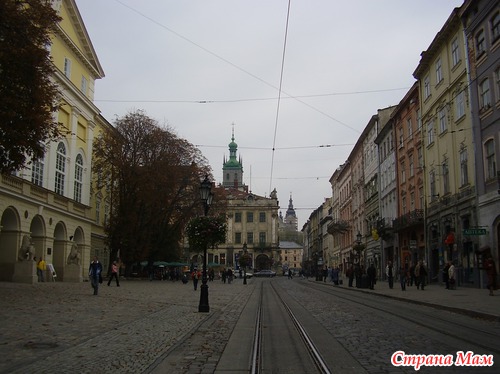 Далее в объективе - здание Львовской Оперы, ренессансно-барочное, пышно украшенное разными фигурами - музы, слава, гении комедии, трагедии, музыки.
