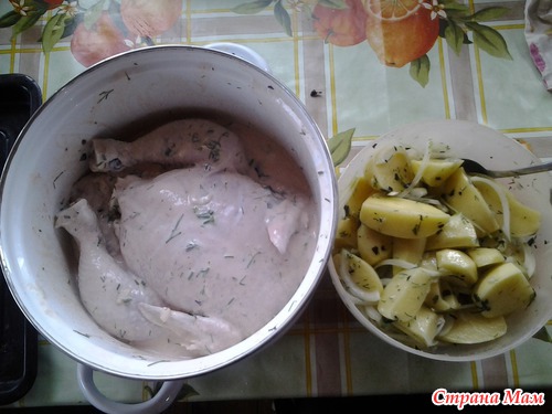Всё хорошо перемешали и замариновали курицу минимум на 1 час, в идеале на несколько