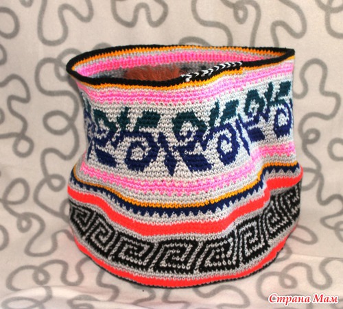 В итоге распустила прежний узор и начала рисунок попроще вязать. Дно получилось очень прочным - обвязывала не леску, а проволочку.