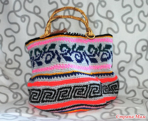 ручки я бы сделала вязаные какого нибудь из цветов, которые на сумке!