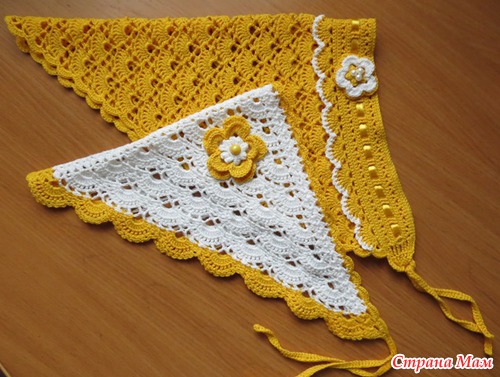 Очень понравился найденный на просторах интернета комплект "Дюймовочка", поэтому решила связать своей доченьке платье, используя идею этого комплекта, остальное вязала по основному узору из ракушек. Все подробности по вязанию и другие фото в моем альбоме https://www.stranamam.ru/album/5974483/