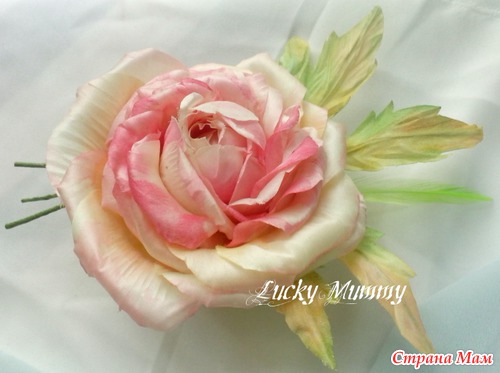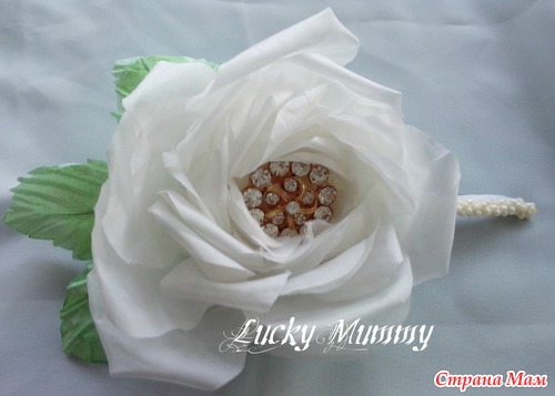 зажим 12 см, белая роза, натуральный шелк