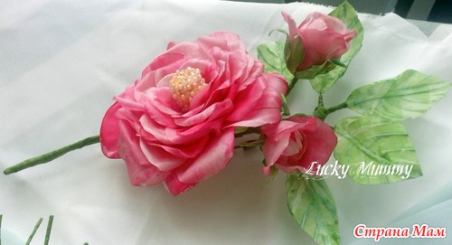 бутоньерка на шляпку "РОзы с бутонами". Натуральный шелк, ручное окрашивание