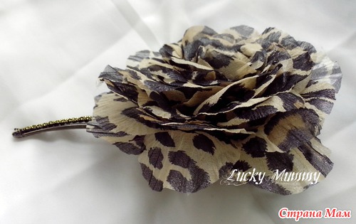 зажим 12 см, леопардовая роза, натуральный шелк