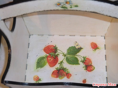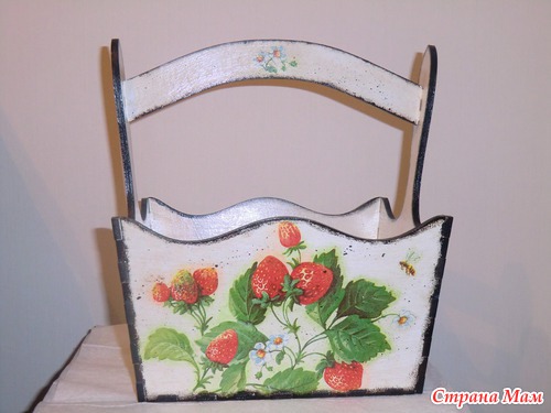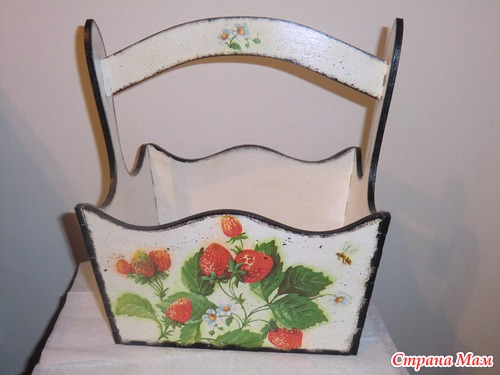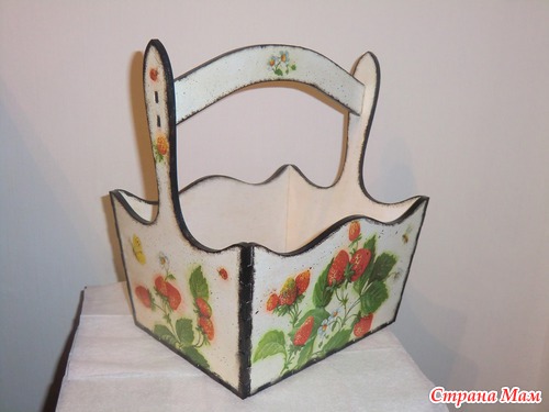 и закончить лукошко для сбора летних ягодок. Опять работала с битумом, в принципе стало легче, вот только может слишком края контрастные сделала