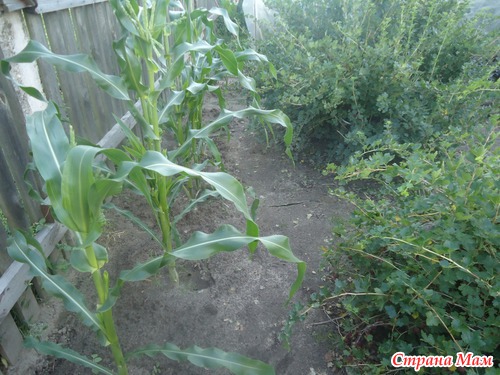 А вот живая изгородь вдоль забора - кукуруза.