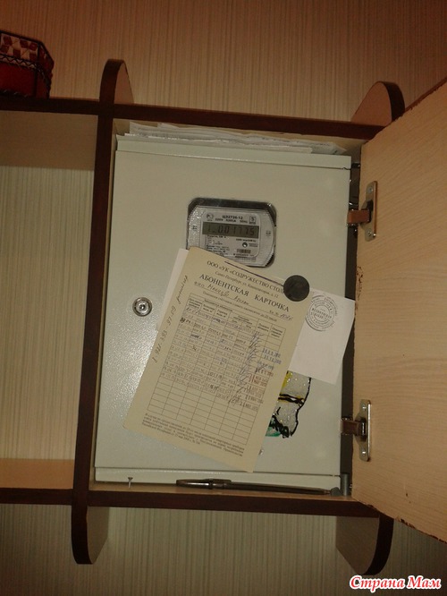 Когда мы въехали, посреди стены в прихожей красовался огромный, уродливый счетчик электроэнергии. Сначала мы хотели его перенести, но оказалось, что это, во-первых, технически сложно, а во-вторых, надо кучу бумаг и разрешений в жэке собрать. Так и торчал он год, доводя всех до белого каления, пока мужу не пришла гениальная мысль "заковать" его в декоративный ящик-стеллаж.