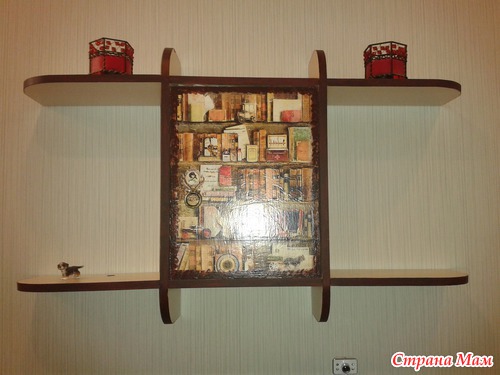 Изучила вопрос, купила материалы. Еще раз изучила вопрос, ужаснулась, поняла, что как пить дать - напортачу. Извела вопросами подруг-декупажниц. И, кряхтя и охая, приступила к процессу. Использовала специальную декупажную карту. Всегда мечтала о собственной библиотеке, чтобы шкафы - во всю стену...