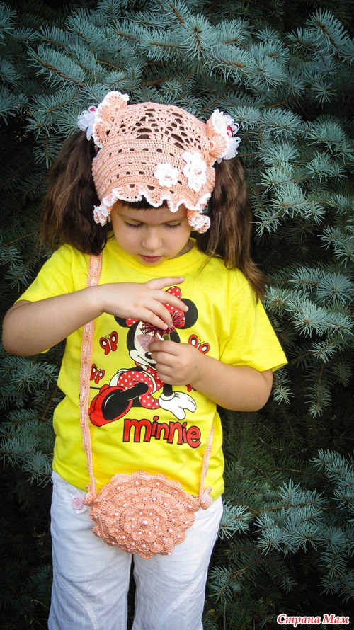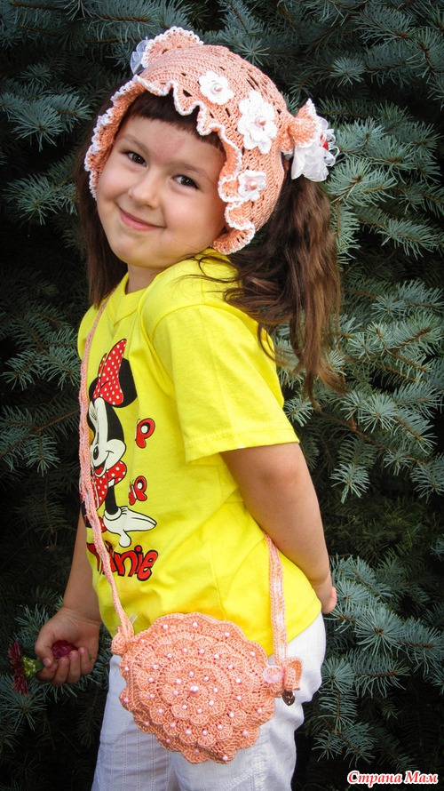 Вот такой вот наборчик получился из панамки "Хвостики" и сумочки (назову "Сердечная Бусинка" )