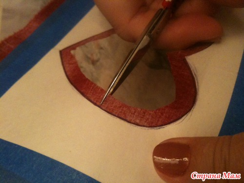 Сначала вырезаем из плотной бумаги нужный дизайн, в моём случае сердце
