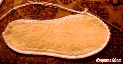 Эти фото из МК автора Morvenna из дневника на Ли. Ру. Пусть вас не смущает, что обвязана меховая стелька, здесь она служит подошвой. Вот ссылка на МК автора morvenna. Очень мне нравится этот мастер-класс! Может, он будет вам полезен, особенно если надо присоединить готовую подошву.