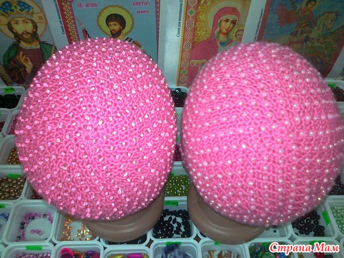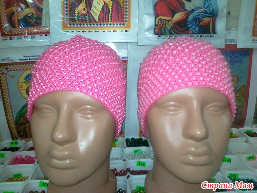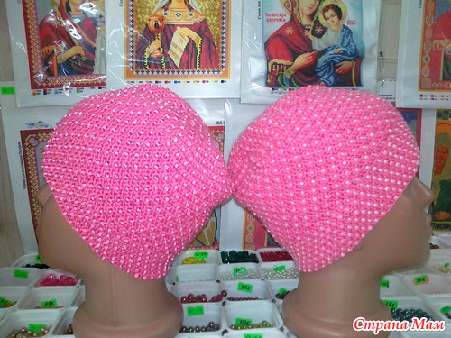 Мама вдохновила на вязание шапочек с бисером, вот что из этого получилось. Связаны с разным бисером, одна с перламутровым, другая- с окрашенным внутри прозрачным, фото плохо отображает