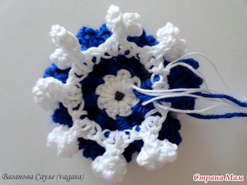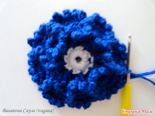 Ну, как вам? Правда, необычный цветочек? Я все гадала, как эти спиральки вывязываются. Все оказалось, как всегда, намного проще. Вот, посмотрите, без этих белых завитушек цветок выглядит так