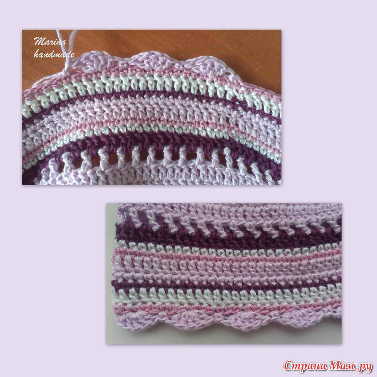 25 ряд - обвязка основным цветом. Вяжем ракушки: 5 ССН, через 2 петли СБН, через 2 петли 5 ССН и т. д.