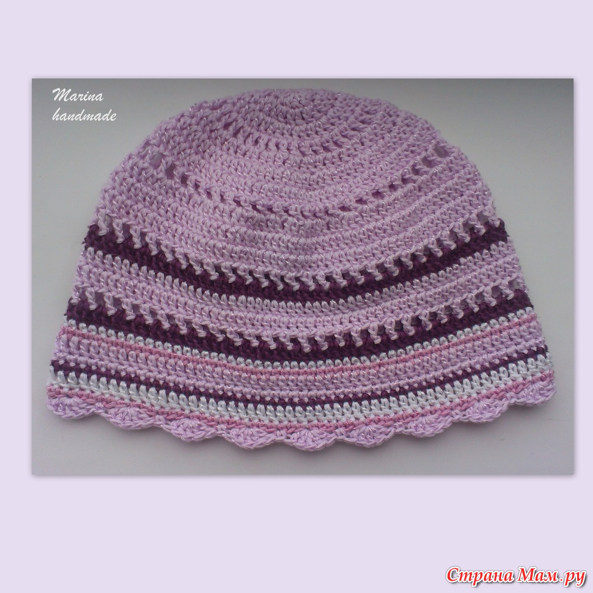 Здравствуйте, дорогие Страномамочки!!! Подобную шапочку я уже вязала раньше, только с яблочком https://www.stranamam.ru/album/5584690/. Мы выяснили, что не у всех получается расширение блинчика этой шапочки и поступило предложение на МК. А так как я ту шапочку подарила своей племяше, то возникла необходимость срочно связать для дочи (срочно. потому что у нас похолодало вдруг). Итак, вязать будем на окружность головы 50 см из ниточек Саммер (100 г /350 м) крючком № 2,5, можно взять также LIRA от Vita, Bella от Alize, т. е. похожие метражи. Кстати, я вязала такую из Джинс на окр. 54 см, не меняя схемы.