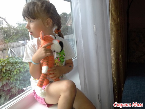 Одна замечательная страномамочка сподвигла меня на создание замечательной игрушки. Почему сподвигла? Так потому что связать для меня сейчас что-то (с моими шкодятами), это равносильно подвигу. Нооо я не жалею, что взялась за это дело, пусть не очень быстро (моя напарница по вязанию уже дааавно успела ее связать