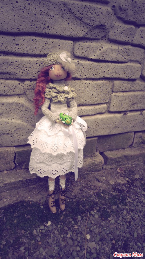 Сапожки выкроила и наклеила на ножку. Места шнуровки оставила свободными для шнурочков. Каблук из папье-маше и раскрашен акриловой краской, тонирован золотым контуром, приклеен к сапогу.