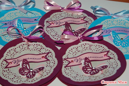 Начну с пригласительных. У нас был тематический праздник, поэтому много всяческих штучек я делала в одном стиле, в том числе и пригласительные.