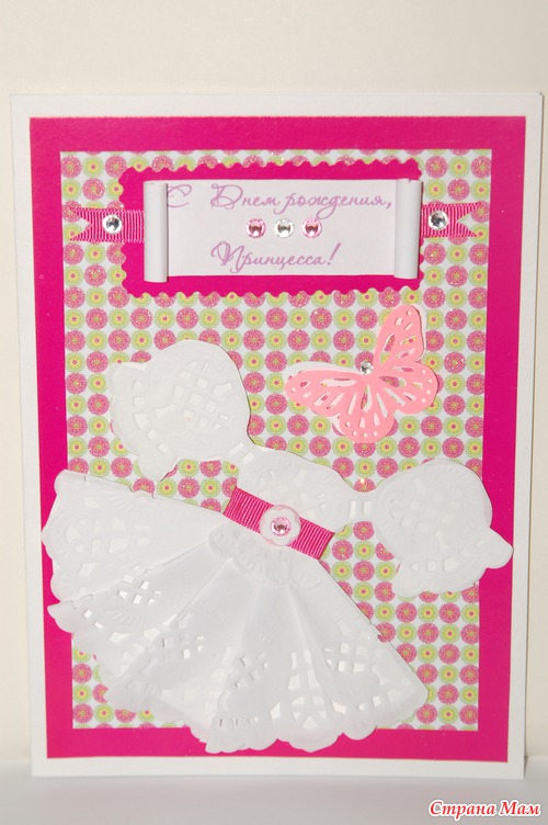 За мастер-класс по изготовлению такого воздушного платьица спасибо автору alisa-lisa1. Благодаря этому мастер-классу https://www.stranamam.ru/post/3326874/ родилась такая милая детская открыточка.