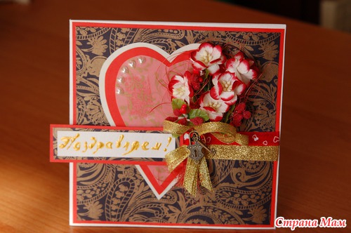 А эта открытка делалась на годовщину свадьбы моих родителей. С ней вышел маленький прокол, я не проверила принтер, оказалось, что закончились чернила, а делала в последний момент, как обычно