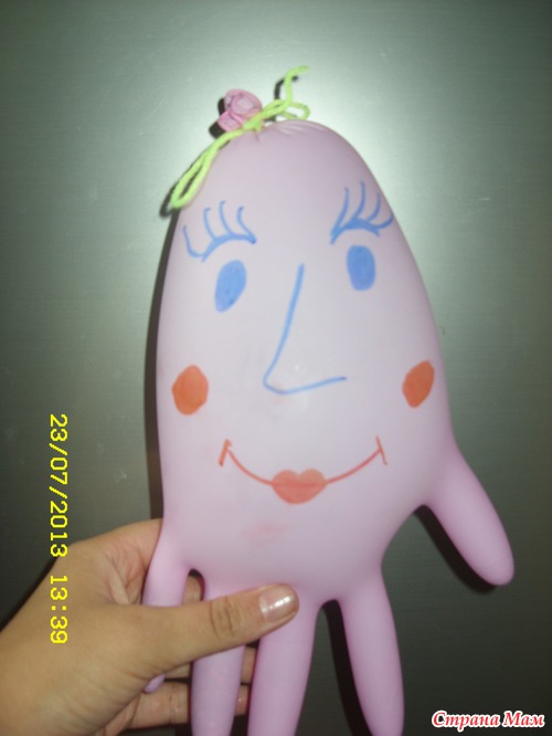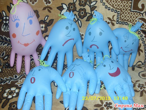 А больше всего меня поразило, когда я из розовой перчатки сделала еще одного человечка - девочку, и все думала что про нее рассказать ребенку ( она такая гламурная розовая, влюбленная ), Дима мне заявил, что это их мама и она всегда добрая!!! Было приятно...