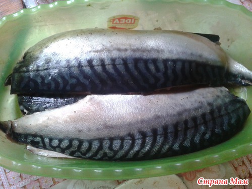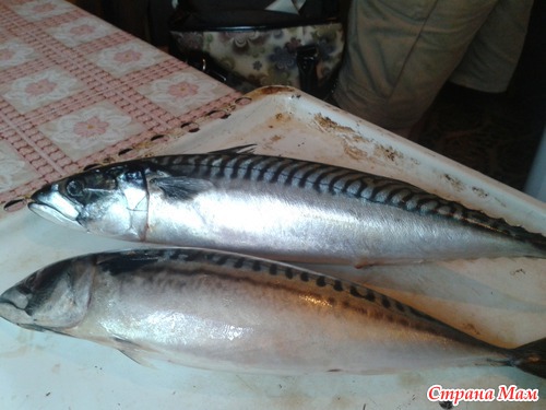 Берем пару рыбок скумбрии граммов по 600 каждая. Более мелкую рыбу лучше не брать будет суховата.