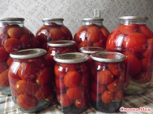 2) Рецепт 2. "Помидоры классические". Всё тоже самое, что написано выше, только маринад другой. Маринад: на слитую воду из банки (обычно это 1, 5 литра) добавить 1 ст. л. соли, 2 ст. л. сахара, 1 ч. л. укс. эссенции. В маленькие баночки я закрываю мелкие помидорки (типа черри), они потом идут на украшение салатов.