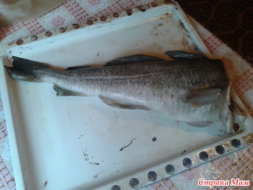 И так рыбу ( в нашем случае треску), размораживаем, тщательно соскребаем чешую и слизь, промываем. Конечно этот этап можно пропустить если снять с рыбы шкуру, но с кожей мне нравится больше.