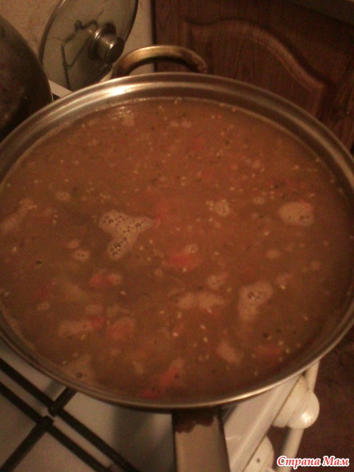 Засыпам гречку, добавляем воду и соль, варим до готовности