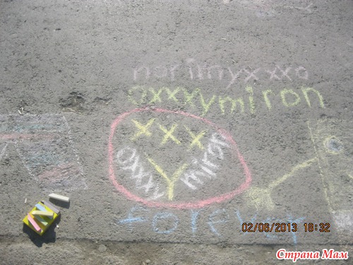 На прогулке рисовал на асфальте: