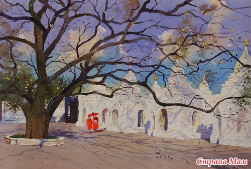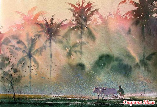 Современный бирманский художник Myoe Вин Аунг (Myoe Win Aung), известен своими картинами, излучающими тишину и спокойствие. Родился в городе Янгон, в 1972 году, учился у нескольких мастеров живописи, в том числе Ю Лунь Гива, известного в Бирме, художника. Он начал рисовать еще в раннем детсте, после школы, в 1989 году, поступил в Государственную Школу изящных искусств, которую окончил в 1992 году со степенью бакалавра в области изобразительного искусства.