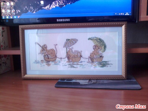 Одна моя подружка, Олечка , когда я поделилась, что хотела бы в комнату дочери вышить какую-нибудь картинку смешную предложила схемку мышек. Мне она так понравилась, что я сразу начала вышивать, но закончив я нечаянно испортила всю вышивку