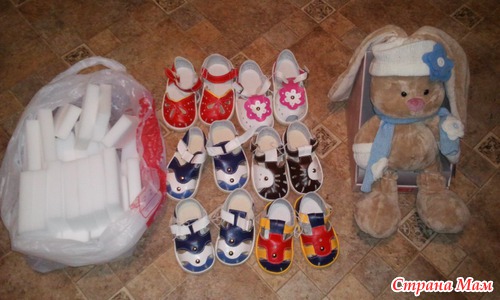 обувку по размерам разобрала - верхний ряд красно-розовый для дочки подруги