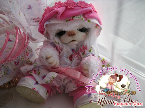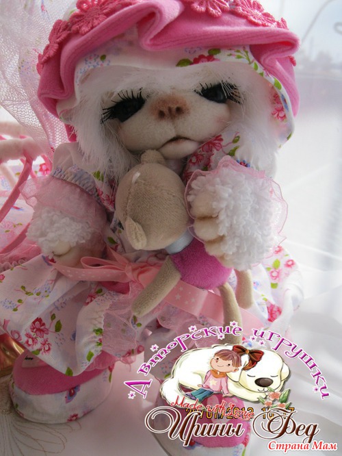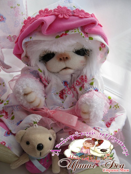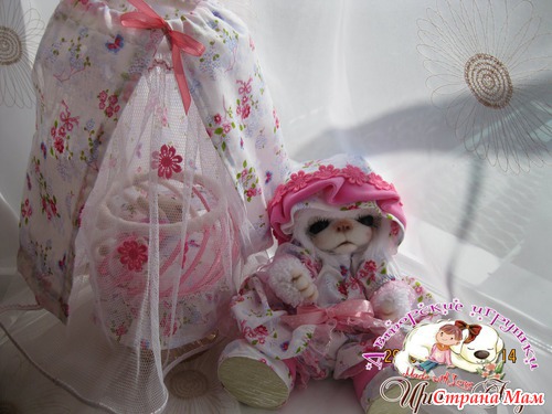 Малинка маленькая мишка. Ростиком 25 см. Глазки открываются и закрываются. Ротик открывается и закрывается. Одежда сшита и снимается(платье. панталончики. панамочка и сандалики)У нее есть маленькая людька(высотой 34 см) и маленький медвежонок. Очень любит поиграть и по спать. Ищет мамочку...