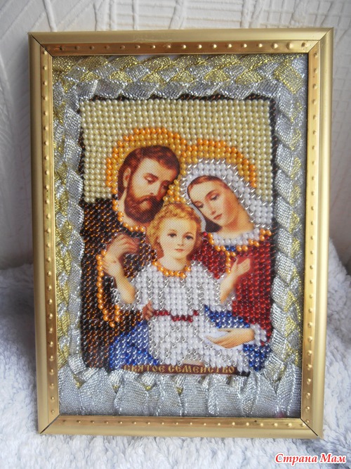 Всем привет. Принимайте в свои ряды. Первый раз вышивала иконы бисером. Очень понравилось. Ставила в рамочку и делала паспарту сама. Не судите строго "Святое семейство" - вышито белыми нитками. "Св. Матрона" - вышито моно нитью. Всем спасибо... Читать полностью