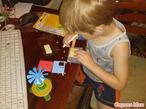 бобинки, заготовка для открытки с паспарту и шарики "С днем рождения", который сразу были отобраны Ромкой для попыток надуть!